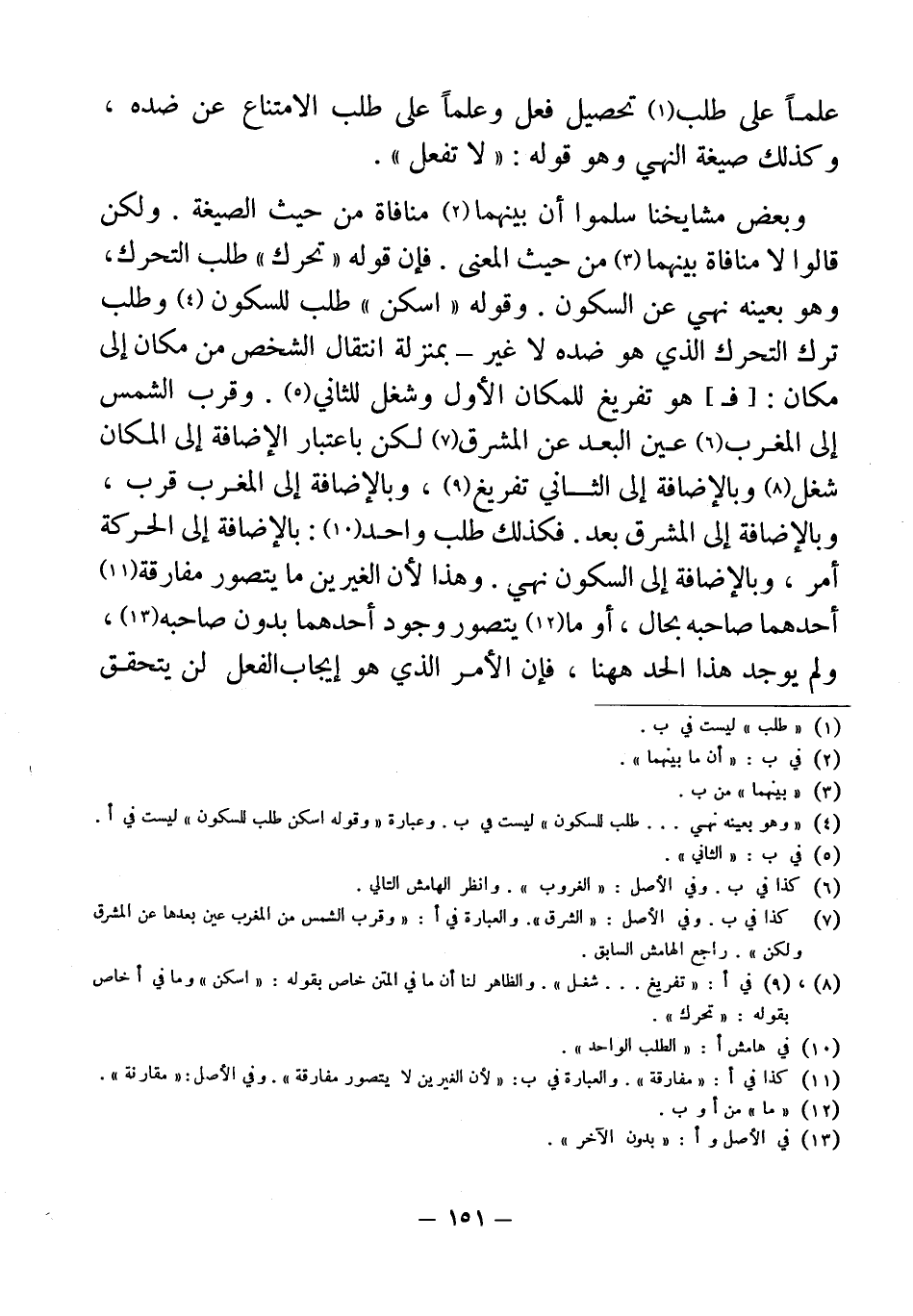 وبعض مشايخنا سلموا أن بينهما (¬2) منافاة من حيث الصيغة. ولكن قالوا لا منافاة بيهما (¬3) من حيث المعنى. فإن قوله "تحرك" طلب التحرك، وهو بعينه نهي عن السكون. وقوله "اسكن" طلب للسكون (¬4) وطلب ترك التحرك الذي هو ضده لا غير - بمنزلة انتقال الشخص من مكان إلى مكان: [فـ]، هو تفريغ للمكان الأول وشغل للثاني (¬5). وقرب الشمس إلى المغرب (¬6) عين البعد عن المشرق (¬7) لكن باعتبار الإضافة إلى المكان شغل (¬8) وبالإضافة إلى الثاني تفريغ (¬9)، وبالإضافة إلى المغرب قرب، وبالإضافة إلي المشرق بعد. فكذلك طلب واحد (¬10): بالإضافة إلى الحركة أمر، وبالإضافة إلى السكون نهي. وهذا لأن الغيرين ما يتصور مفارقة (¬11) أحدهما صاحبه بحال، أو ما (¬12) يتصور وجود أحدهما بدون صاحبه (¬13)، ولم يوجد هذا الحد ههنا، فإن الأمر الذي هو إيجاب الفعل لن يتحقق