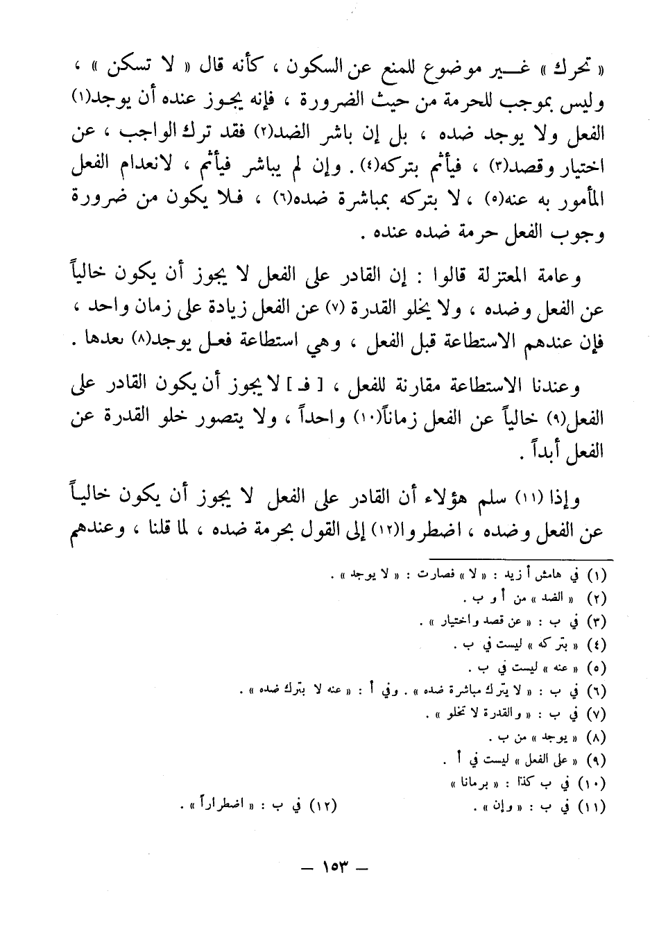 وعامة المعتزلة قالوا: إن القادر على الفعل لا يجوز أن يكون خالياً عن الفعل وضده، ولا يخلو القدرة (¬7) عن الفعل زيادة على زمان واحد، فإن عندهم الاستطاعة قبل الفعل، وهي استطاعة فعل يوجد (¬8) بعدها.