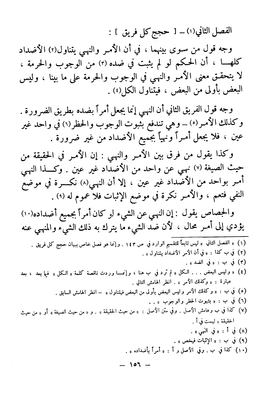 (¬1) "الفصل الثاني" ليس تابعًا للتقسيم الوارد في ص 143. وإنما هو فصل خاص ببيان حجج كل فريق.