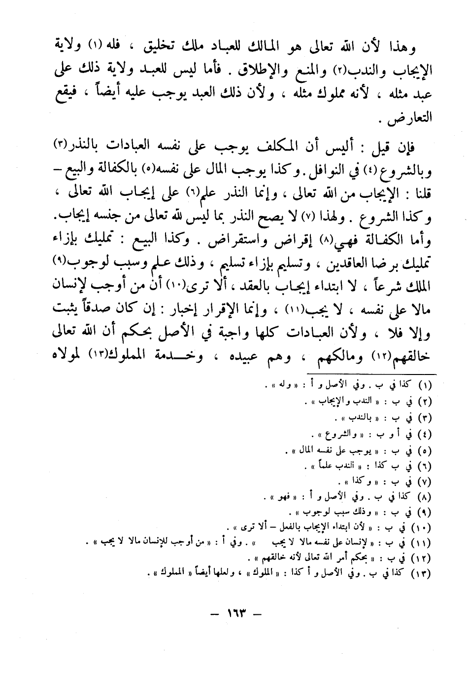 (¬11) في ب: " لإنسان على نفسه مالا لا يجب". وفي أ: "من أوجب للإنسان مالا لا يجب".