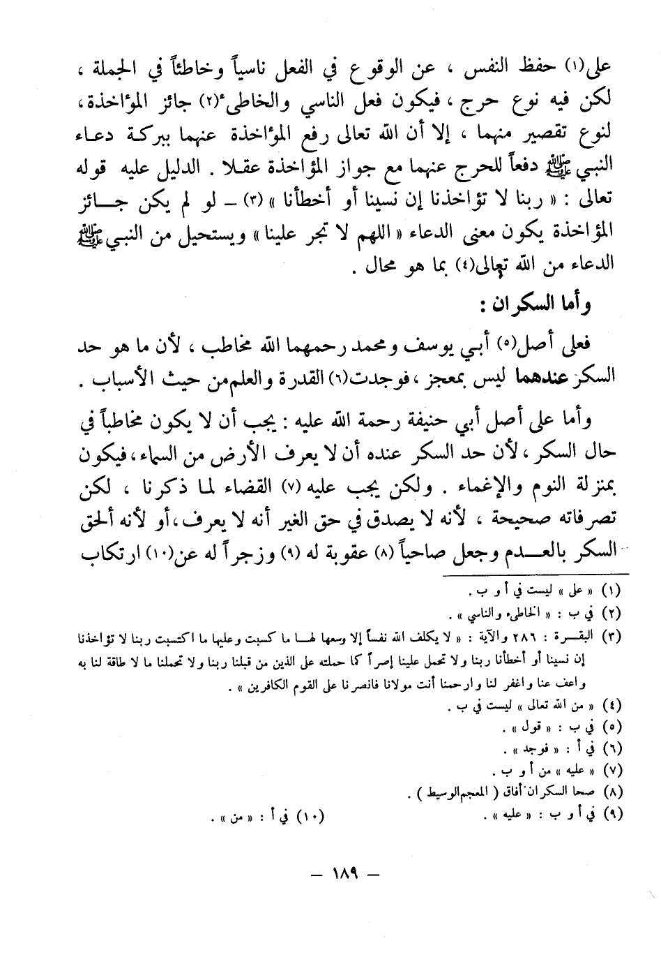 على (¬1) حفظ النفس، عن الوقوع في الفعل ناسيًا وخاطئًا في الجملة، لكن فيه نوع حرج، فيكون فعل الناسي والخاطئ (¬2) جائز المؤاخذة، لنوع تقصير كل منهما، إلا أن الله تعالى رفع المؤاخذة عنهما ببركة دعاء النبي - صلى الله عليه وسلم - دفعًا للحرج عنهما مع جواز المؤاخذة عقلًا. الدليل عليه قوله تعالى: "ربنا لا تؤاخذنا إن نسينا أو أخطأنا" (¬3) - لو لم يكن جائز المؤاخذة يكون معنى الدعاء "اللهم لا تجر علينا" ويستحيل من النبي - صلى الله عليه وسلم - الدعاء من الله تعالى (¬4) بما هو محال.