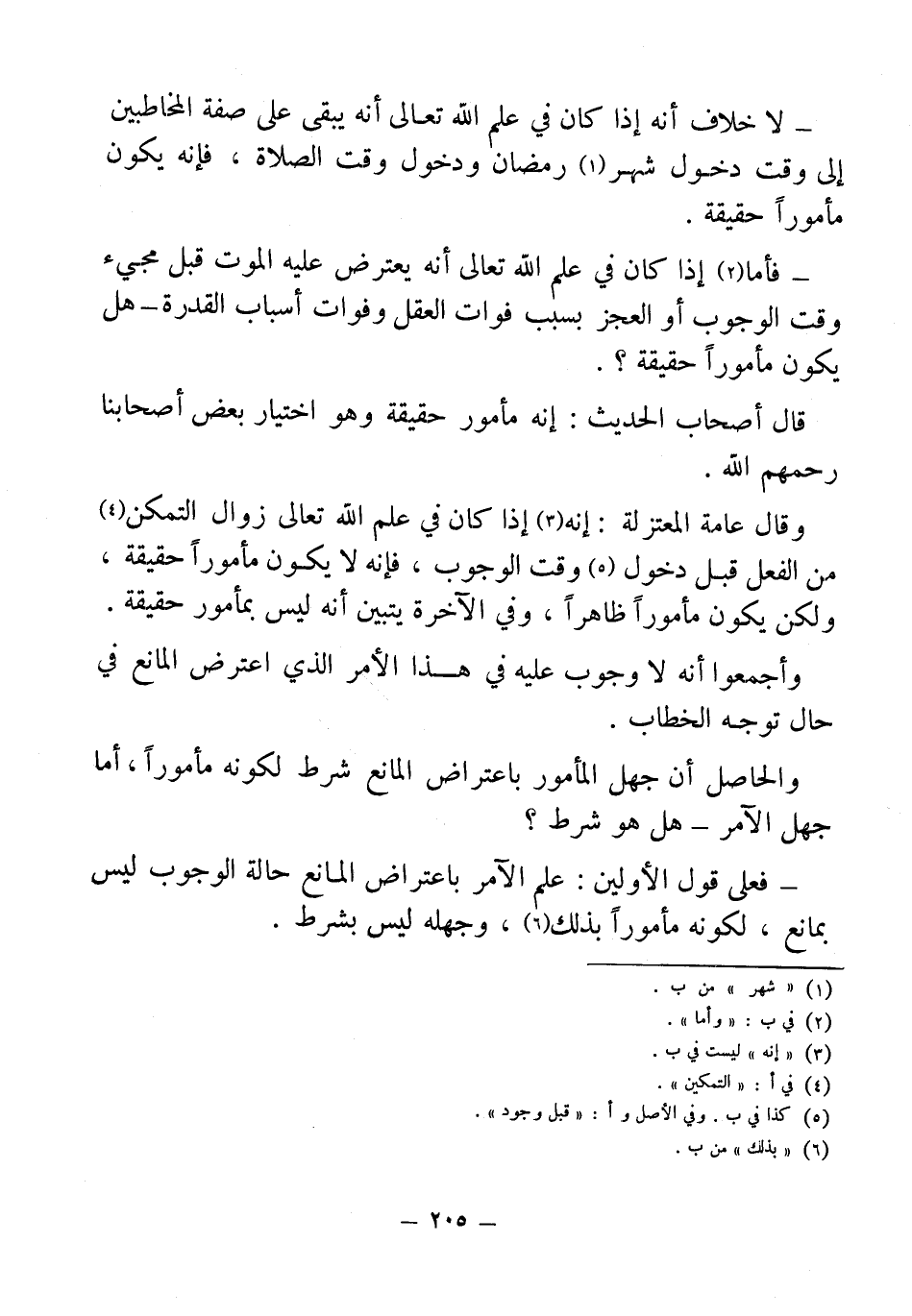وقال عامة المعتزلة: إنه (¬3) إذا كان في علم الله تعالى زوال التمكن (¬4) من الفعل قبل دخول (¬5) وقت الوجوب، فإنه لا يكون مأمورًا حقيقة، ولكن يكون مأمورًا ظاهرًا، وفي الآخرة يتبين أنه ليس بمأمور حقيقة.