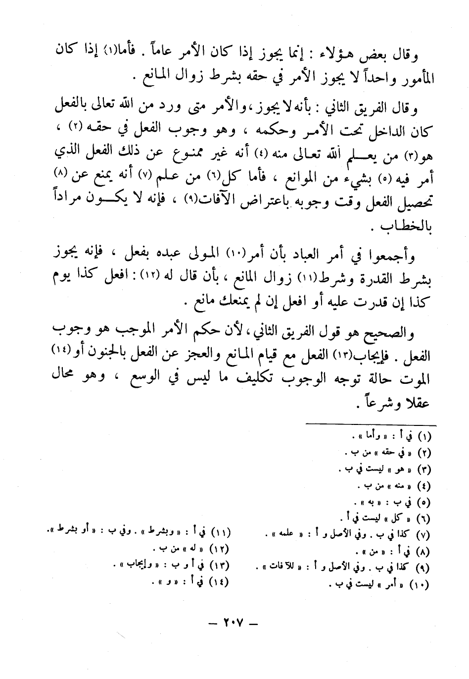 وأجمعوا في أمر العباد بأن أمر (¬10) المولى عبده بفعل، فإنه يجوز بشرط القدرة وشرط (¬11) زوال المانع، بأن قال له (¬12): افعل كذا يوم كذا إن قدرت عليه أو افعل إن لم يمنعك مانع.
