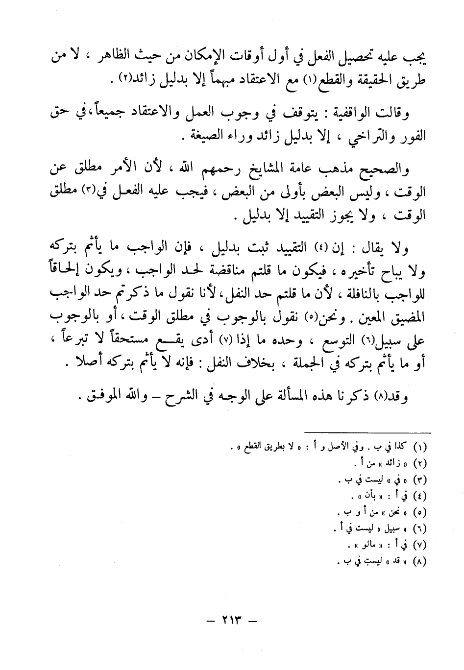 ولا يقال: إن (¬4) التقييد ثبت بدليل، فإن الواجب ما يأثم بتركه ولا يباح تأخيره، فيكون ما قلتم مناقضة لحد الواجب، ويكون إلحاقًا للواجب بالنافلة؛ لأن ما قلتم حد النقل؛ لأنا نقول ما ذكرتم حد الواجب المضيق المعين. ونحن (¬5) نقول بالوجوب في مطلق الوقت، أو بالوجوب على سبيل (¬6) التوسع، حده ما إذا (¬7) أدى يقع مستحقًا لا تبرعًا، أو ما يأتم بتركه في الجملة، بخلاف النفل: فإنه لا يأثم بتركه أصلًا.