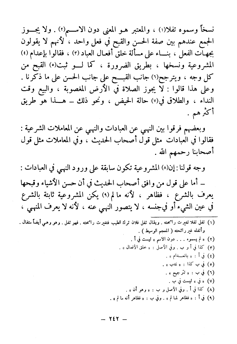 - أما على قول من وافق أصحاب الحديث في أن حسن الأشياء وقبحها يعرف بالشرع، فظاهر؛ لأنه ما لم (¬9) يكن الشروعية ثابتة بالشرع في عين الشيء أو في جنسه، لا يتصور النهي عنه, لأنه لا يعرف المنهي،