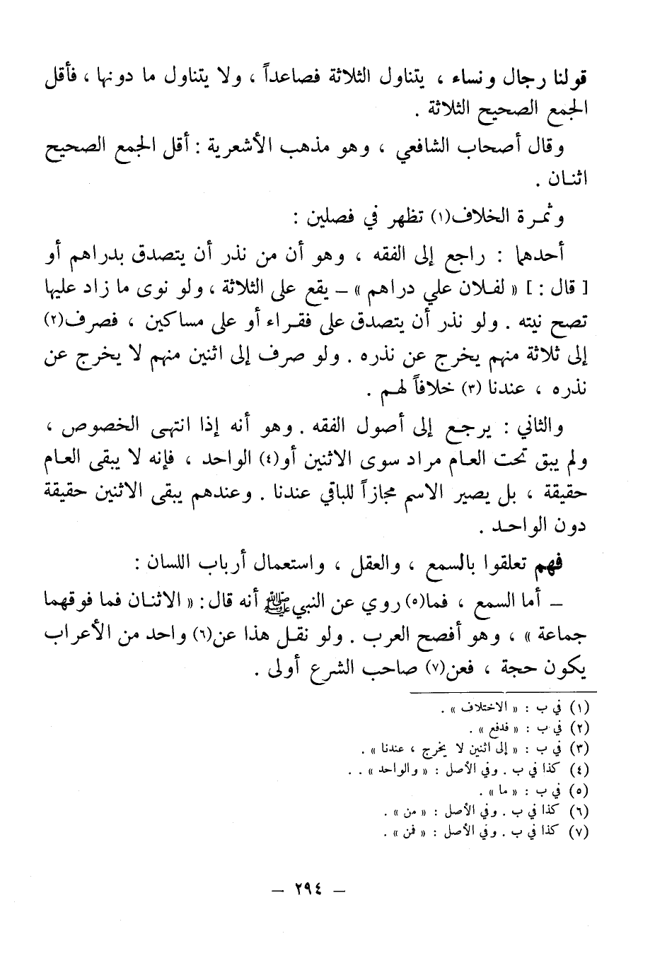 أحدهما: راجع إلى الفقه، وهو أن من نذر أن يتصدق بدراهم أو [قال:] "لفلان علي دراهم"- يقع على الثلاثة، ولو نوى ما زاد عليها تصح نيته. ولو نذر أن يتصدق على فقراء أو على مساكين، فصرف (¬2) إلى ثلاثة منهم يخرج عن نذره. ولو صرف إلى اثنين كل منهم لا يخرج عن نذره، عندنا (¬3) خلافًا لهم.