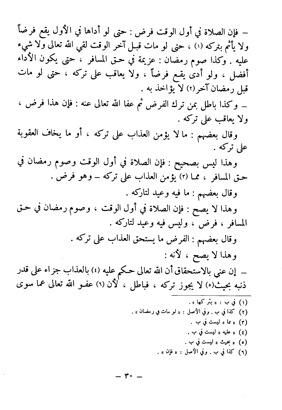 - فإن الصلاة في أول الوقت فرض: حتى لو أداها في الأول يقع فرضاً ولا يأثم بتركه (¬1)، حتى لو مات قبل آخر الوقت لقي الله تعالى ولا شيء عليه. وكذا صوم رمضان: عزيمة في حق المسافر، حتى يكون الأداء أفضل، ولو أدى يقع فرضاً، ولا يعاقب على تركه، حتى لو مات قبل رمضان آخر (¬2) لا يؤاخذ به.