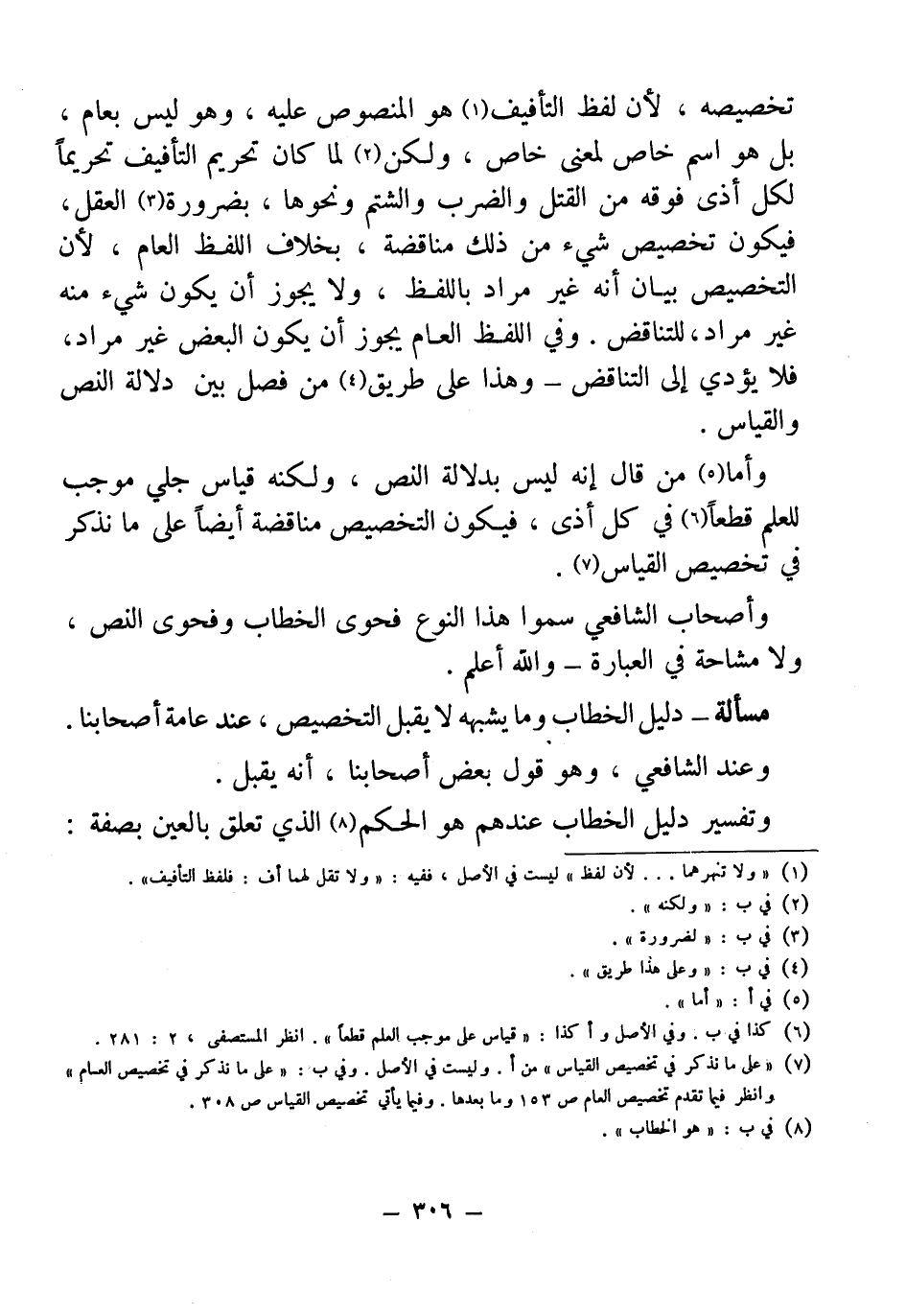 (¬7) "على ما نذكر في تخصيص القياس" من أ. وليست في الأصل. وفي ب: "على ما نذكر في تخصيص العام" وانظر فيما تقدم تخصيص العام ص 153 وما بعدها. وفيما يأتي تخصيص القياس ص 308.