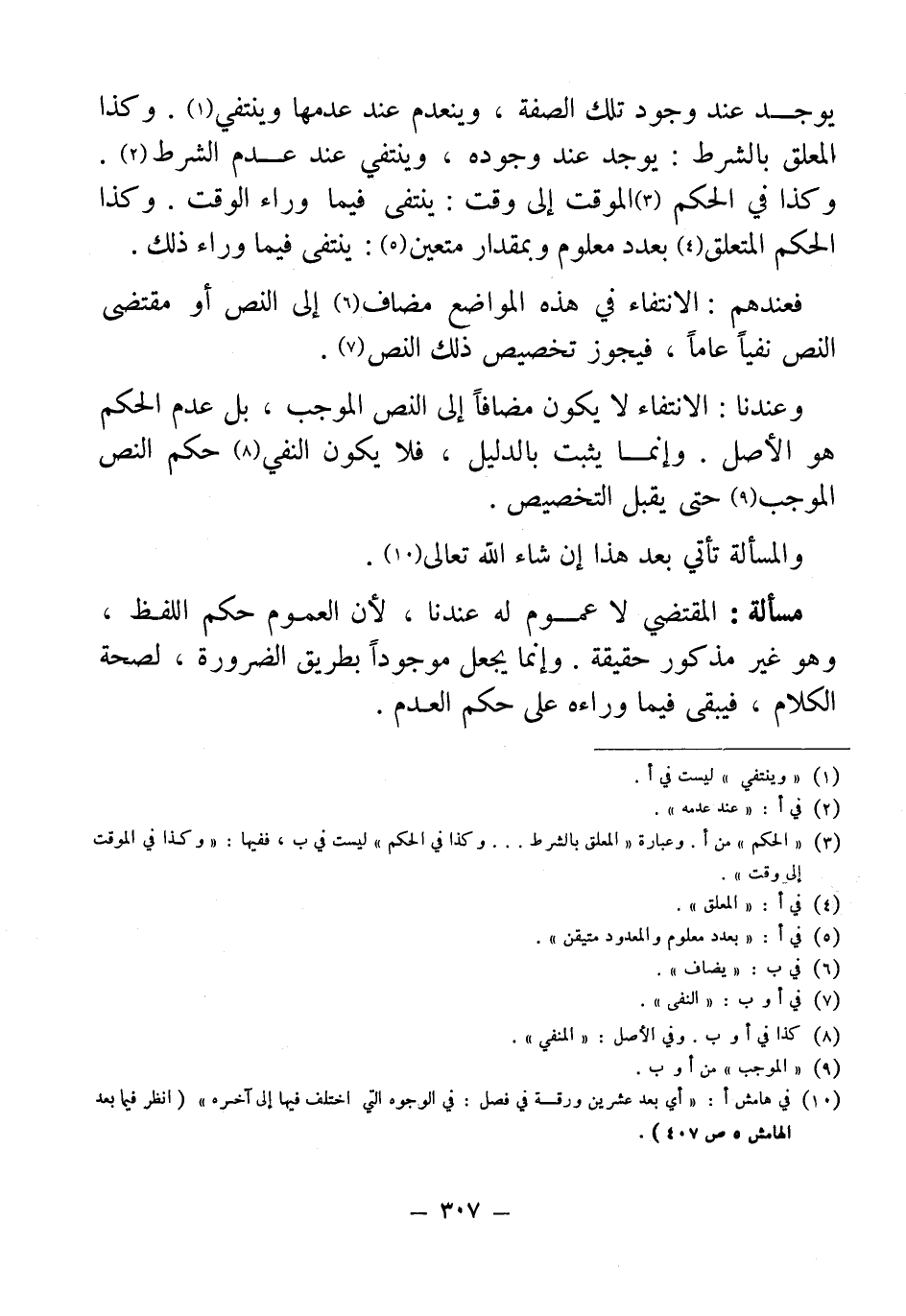 (¬10) في هامش أ: "أي بعد عشرين ورقة في فصل: في الوجوه التي اختلف فيها إلى آخره" (انظر فيما بعد الهامش 5 ص 407).