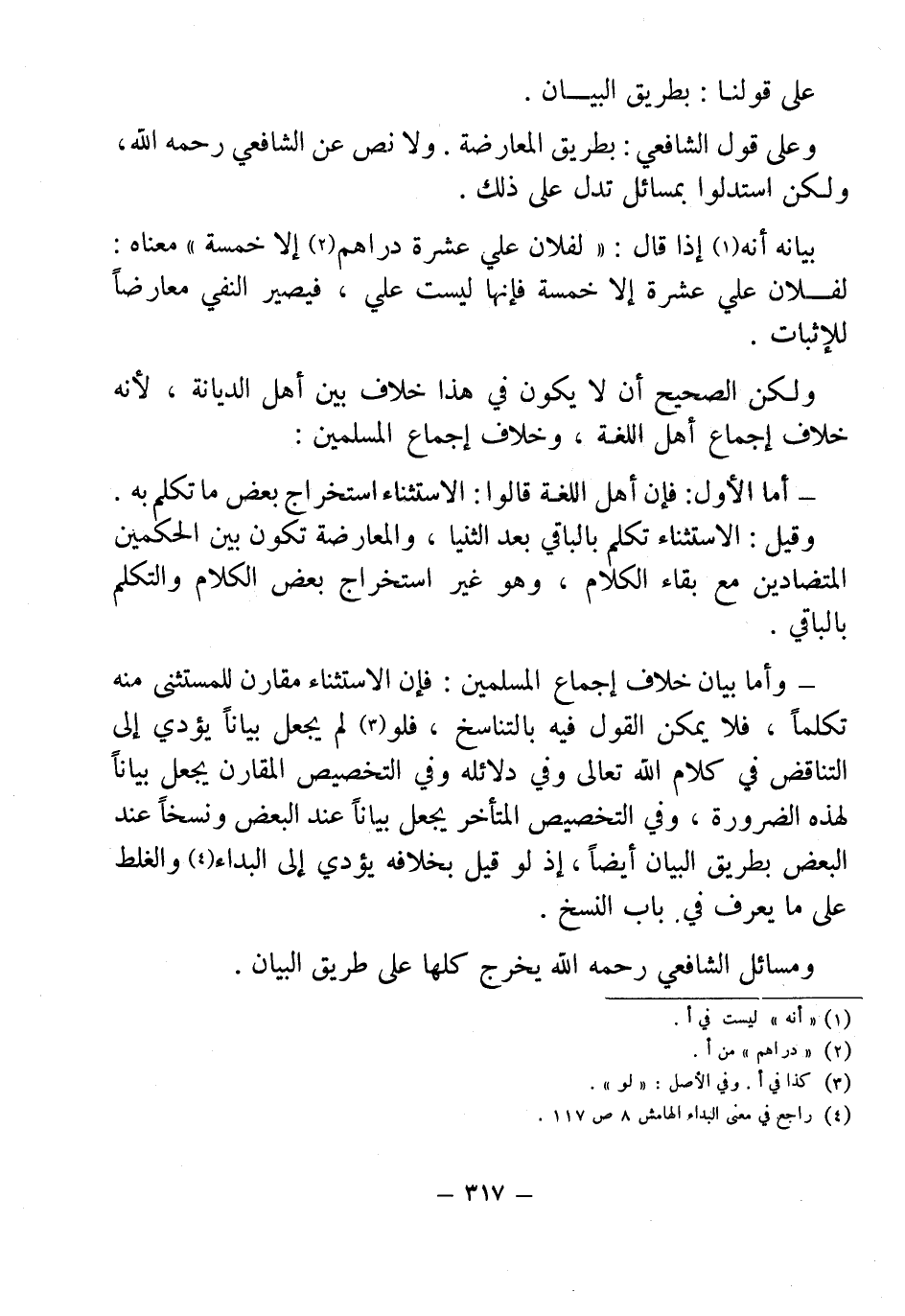 بيانه أنه (¬1) إذا قال: "لفلان علي عضرة دراهم (¬2) إلا خمسة" معناه: لفلان علي عشرة إلا خمسة فإنها ليست علي، فيصير النفي معارضاً للإثبات.