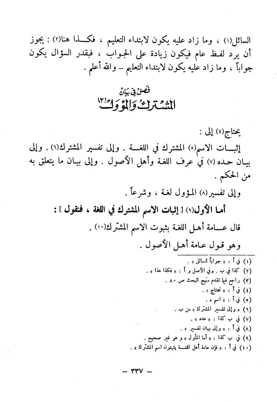 (¬10) في أ: " فإن عامة أهل اللغة يثبتون اسم المشترك".