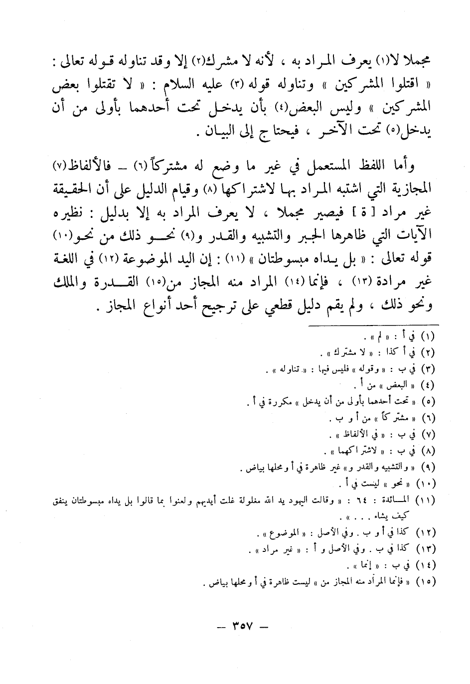 (¬15) "فإنما المراد منه المجاز من" ليست ظاهرة في أو محلها في بياض.