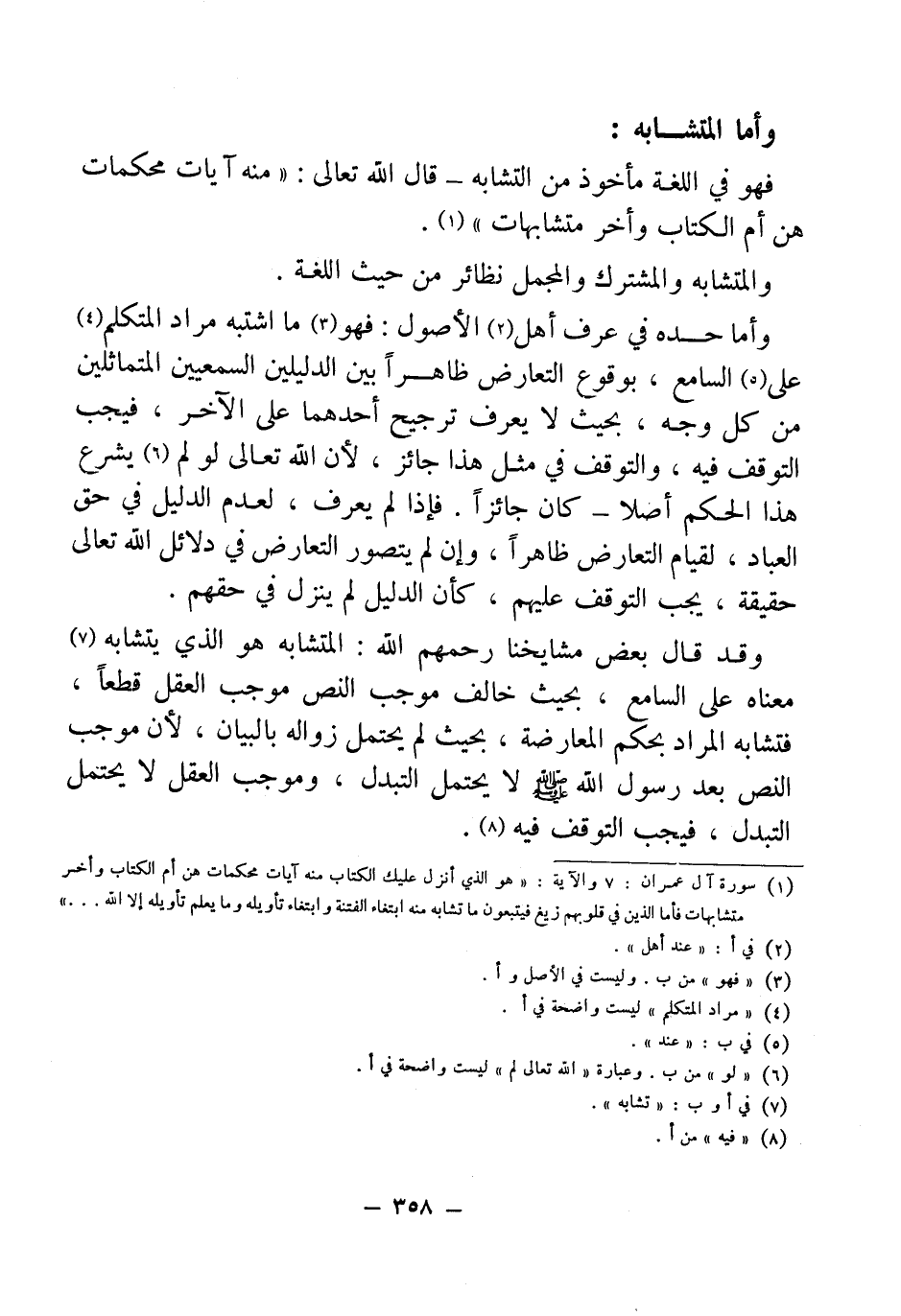 (¬1) سورة آل عمران: 7 والاية: {هُوَ الَّذِي أَنْزَلَ عَلَيْكَ الْكِتَابَ مِنْهُ آيَاتٌ مُحْكَمَاتٌ هُنَّ أُمُّ الْكِتَابِ وَأُخَرُ مُتَشَابِهَاتٌ فَأَمَّا الَّذِينَ فِي قُلُوبِهِمْ زَيْغٌ فَيَتَّبِعُونَ مَا تَشَابَهَ مِنْهُ ابْتِغَاءَ الْفِتْنَةِ وَابْتِغَاءَ تَأْوِيلِهِ وَمَا يَعْلَمُ تَأْوِيلَهُ إِلَّا اللَّهُ ......} [آل عمران: 7]