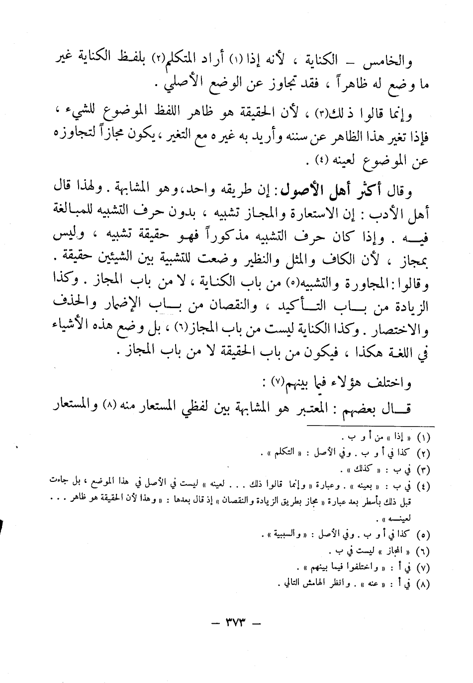 (¬4) في ب: "بعينه". وعبارة "وإنما قالوا ذلك ... لعينه" ليست في الأصل في هذا الموضع، بل جاءت قبل ذلك بأسطر بعد عبارة "مجاز بطريق الزيادة والنقصان" إذ قال بعدها: "وهذا لأن الحقيقة هو ظاهر ... لعينه".