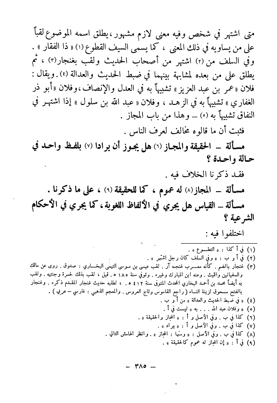 (¬6) كذا في ب. وفي الأصل و (أ): "المجاز والحقيقة".