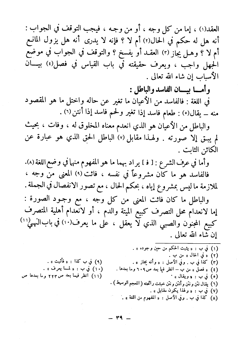 وأما بيان الفاسد والباطل:
