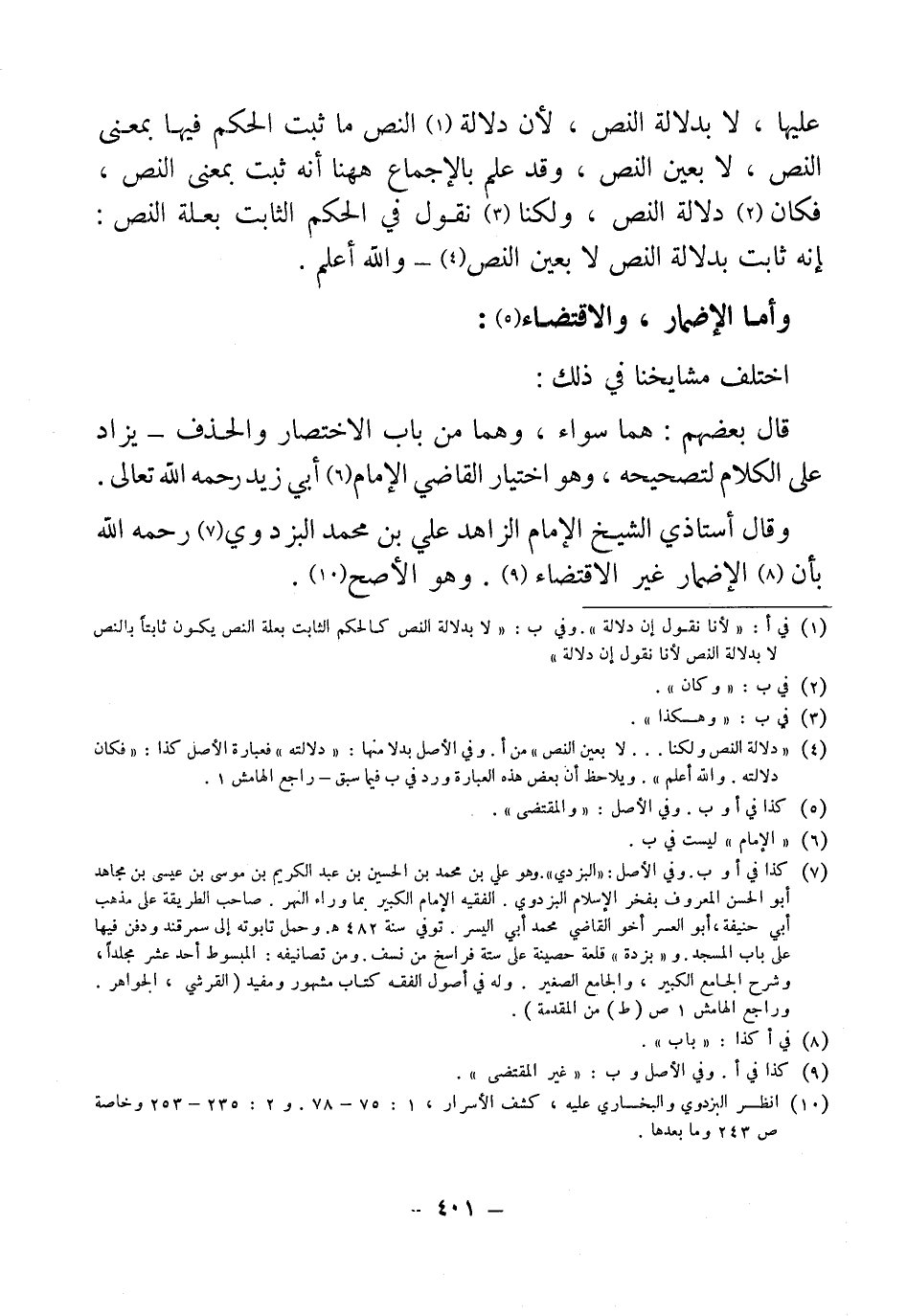 (¬10) انظر البزدوي والبخاري عليه، كشف الأسرار، 1: 75 - 78. و 2: 235 - 253 وخاصة ص 243 وما بعدها.