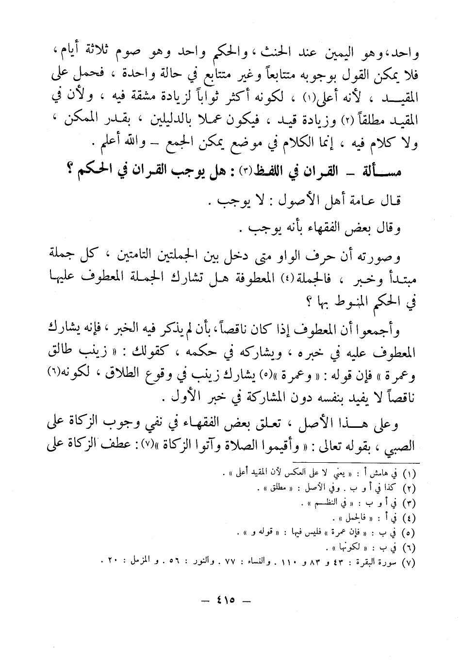 مسألة - القران في اللفظ (¬3): هل يوجب القران في الحكم؟