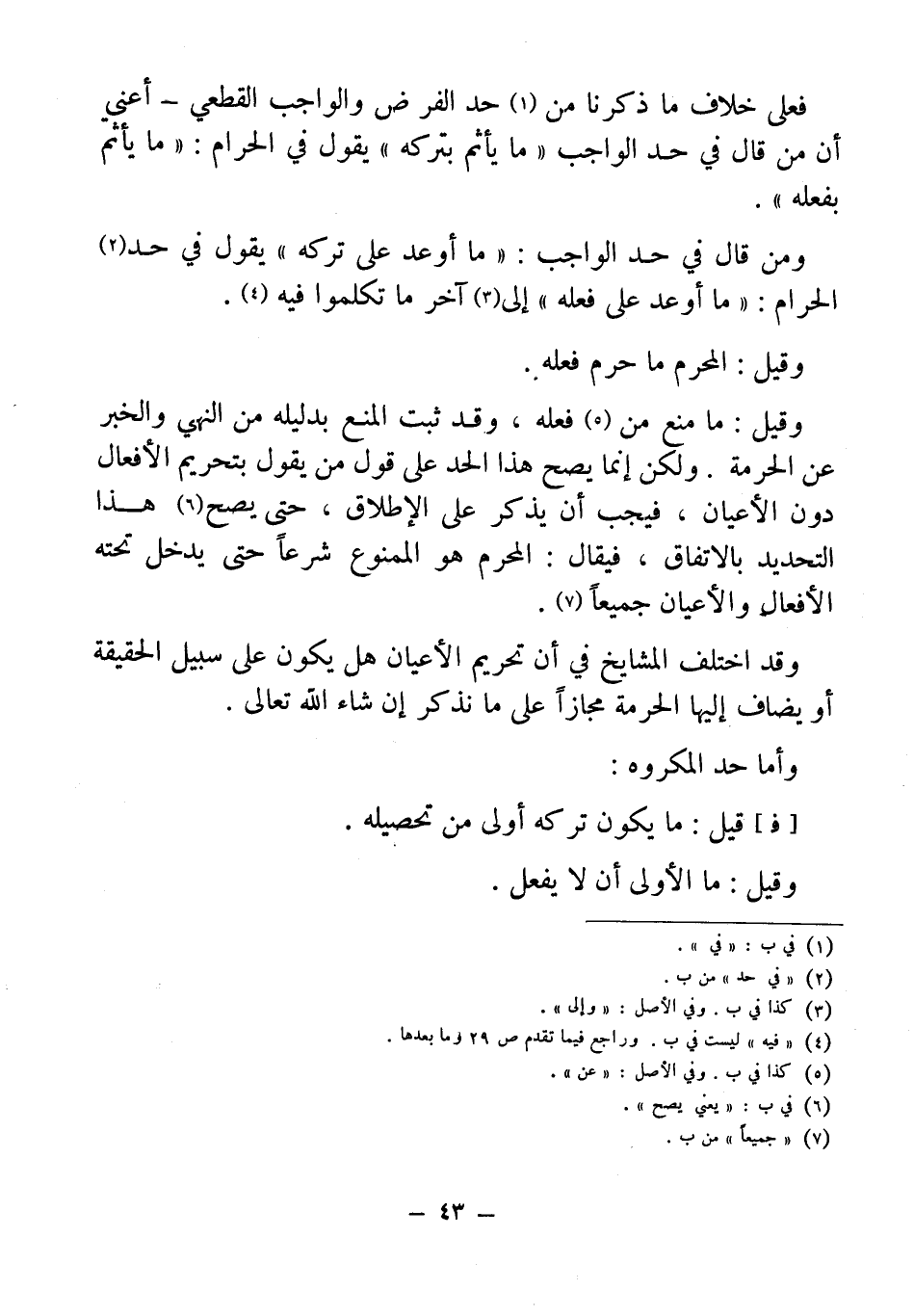 ومن قال في حد الواجب: "ما أوعد على تركه" يقول في حد (¬2) الحرام: "ما أوعد على فعله" إلى (¬3) آخر ما تكلموا فيه (¬4).