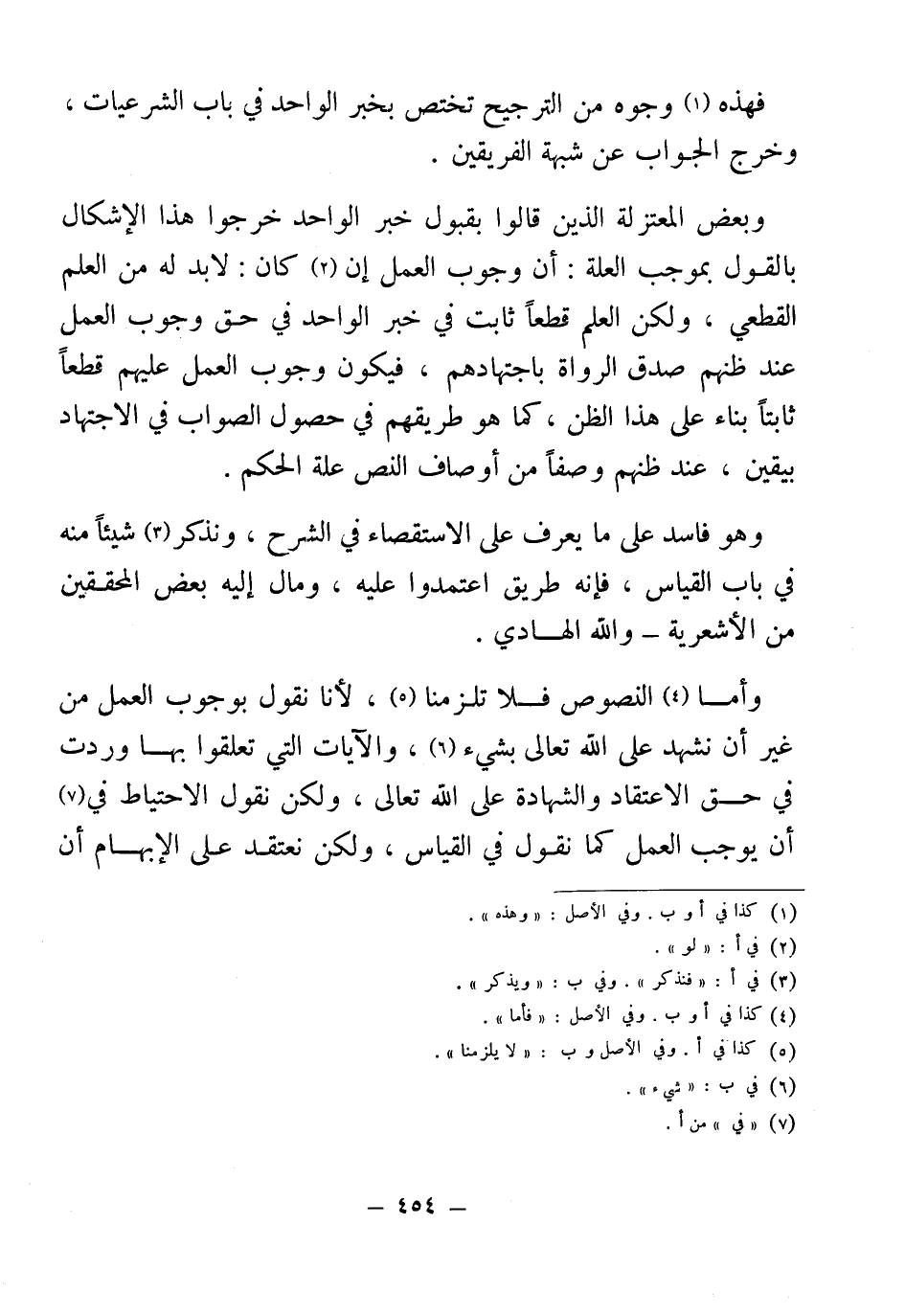 وأما (¬4) النصوص فلا تلزمنا (¬5)، لأنا نقول بوجوب العمل من غير أن نشهد على الله تعالى بشيء (¬6)، والآيات التي تعلقوا بها وردت في حق الاعتقاد والشهادة على الله تعالى، ولكن نقول الاحتياط في (¬7) أن يوجب العمل كما نقول في القياس، ولكن نعتقد على الإبهام أن
