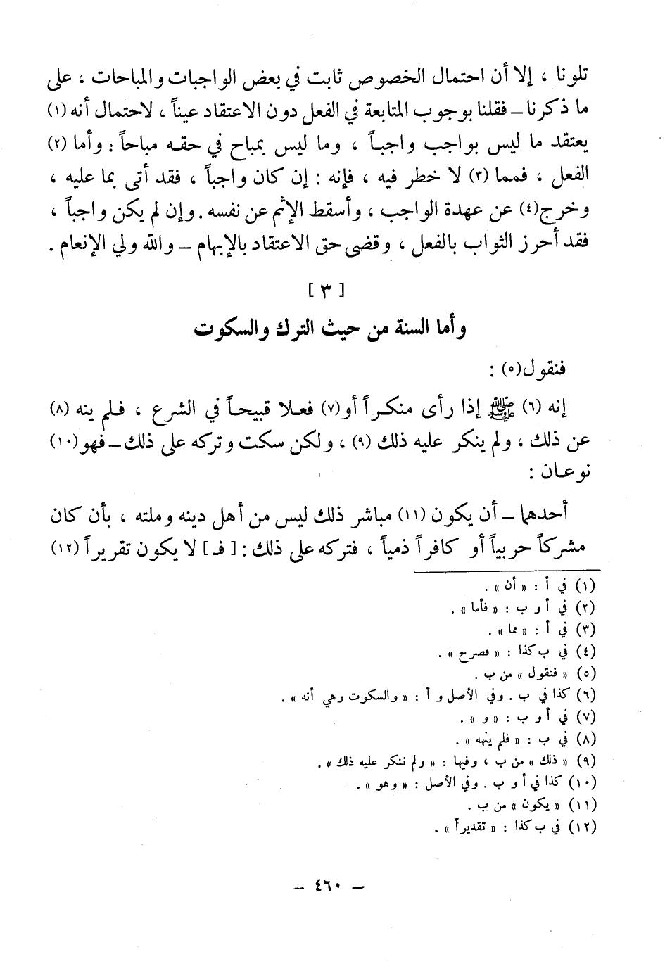 وأما السنة من حيث الترك والسكوت