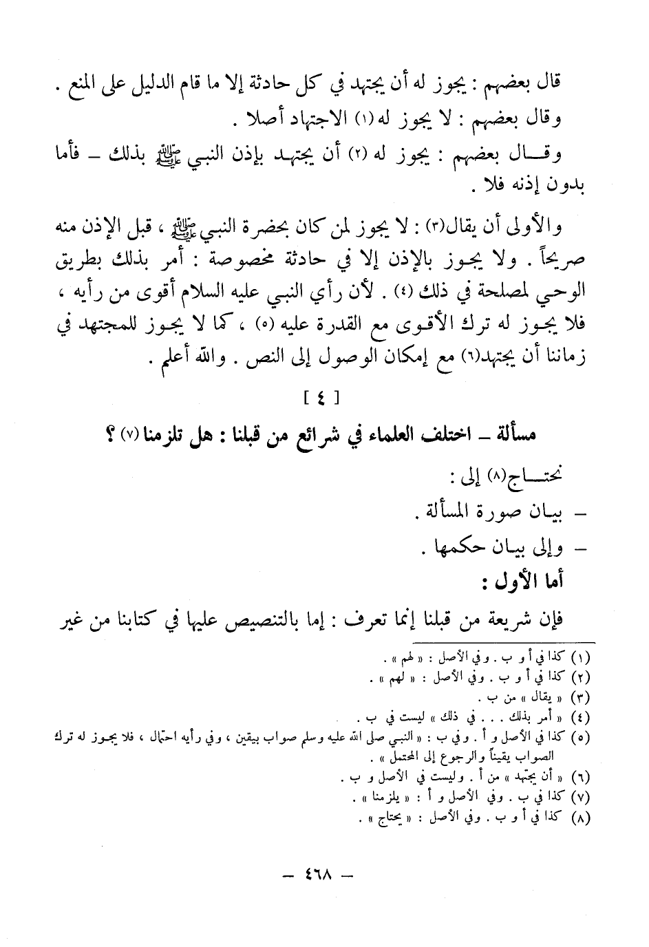 (¬5) كذا في الصل وأ. وفي ب: "النبي - صلى الله عليه وسلم - صواب بيقين، وفي رأيه احتّمال، فلا يجوز له ترك الصواب يقينًا والرجوع إلى المحتمل".