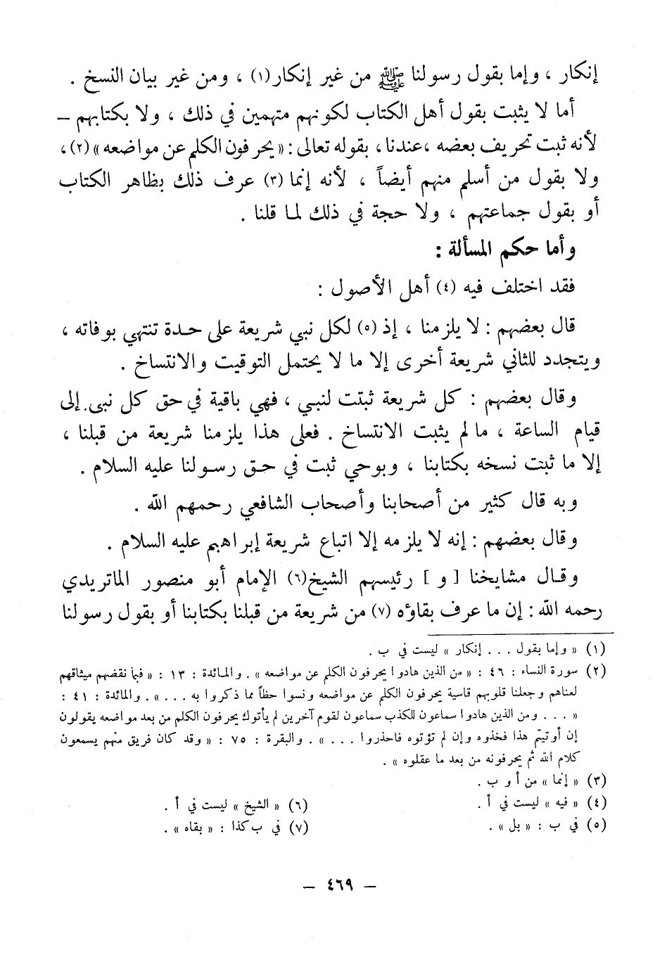 وقال مشايخنا [و] رئيسهم الشيخ (¬6) الإمام أبو منصور الماتريدي رحمه الله: إن ما عرف بقاؤه (¬7) من شريعة من قبلنا بكتابنا أو بقول رسولنا