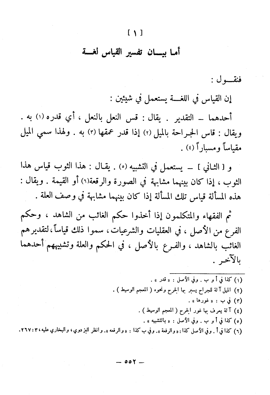 ثم الفقهاء والمتكلمون إذا أخذوا حكم الغائب من الشاهد، وحكم الفرع من الأصل، في العقليات والشرعيات، سموا ذلك قياسًا، لتقدير هم الغائب بالشاهد، والفرع بالأصل، في الحكم والعلة وتشبيههم أحدهما بالآخر.
