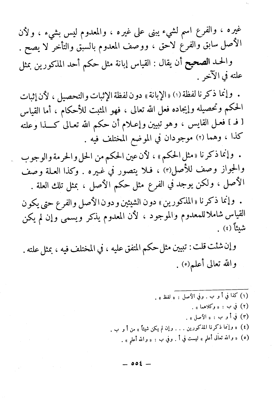 • وإنما ذكرنا "المذكورين" دون الشيئين ودون الأصل والفرع حتي يكون القياس شاملا للمعدوم والموجود، لأن المعدوم يذكر ويسمى وإن لم يكن شيئًا (¬4).
