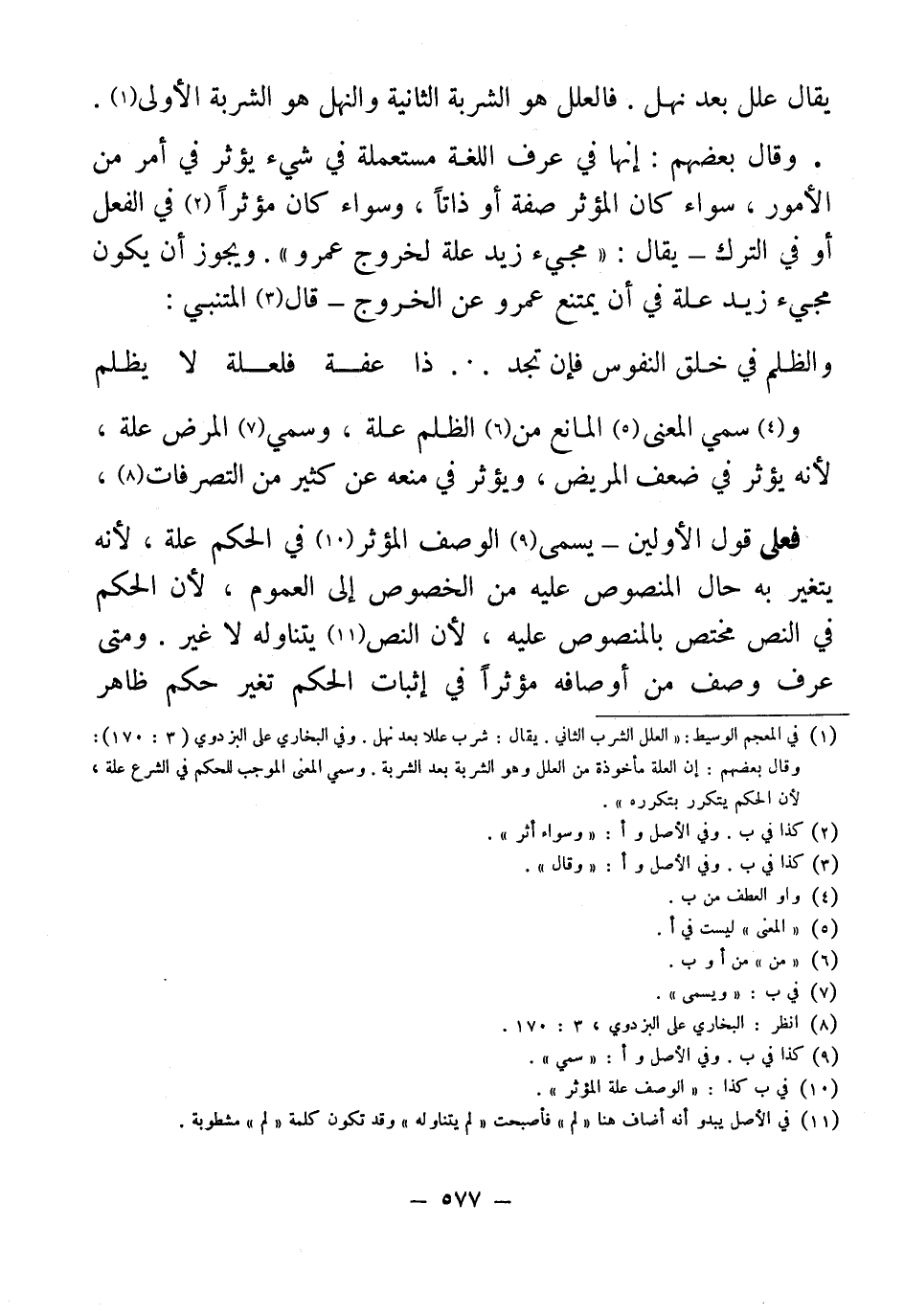 (¬1) في المعجم الوسيط: "العلل الشرب الثاني. يقال: شرب عللا بعد نهل. وفي البخاري على البزدوي (3: 170): وقال بعضهم: إن العلة مأخوذة من العلل وهو الشربة بعد الشربة. وسمي المعنى الموجب للحكم في الشرع علة، لأن الحكم يتكرر بتكرره".