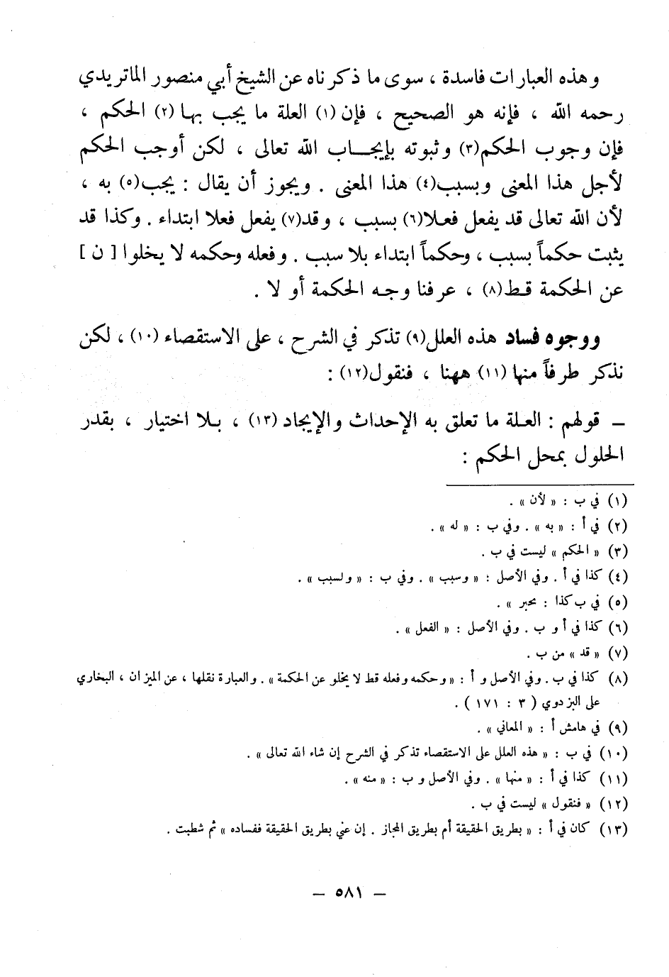 (¬8) كذا في ب. وفى الأصل و (أ): "وحكمه وفعله قط لا يخلو عن الحكمة". والعبارة نقلها، عن الميزان، البخاري على البزدوي (3: 171).