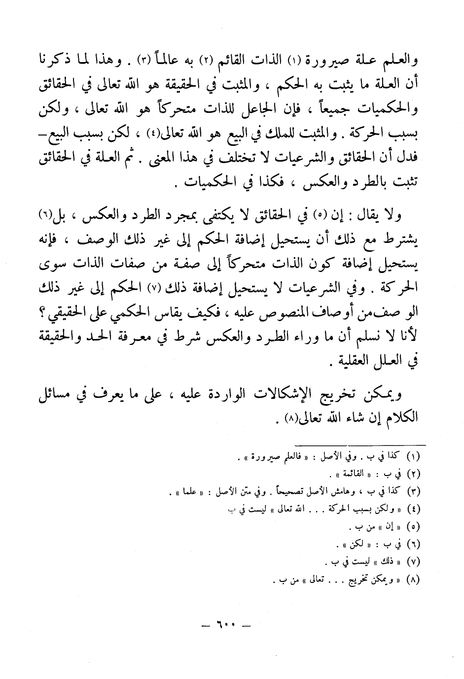 ويمكن تخريج الإشكالات الواردة عليه، على ما يعرف في مسائل الكلام إن شاء الله تعالى (¬8).