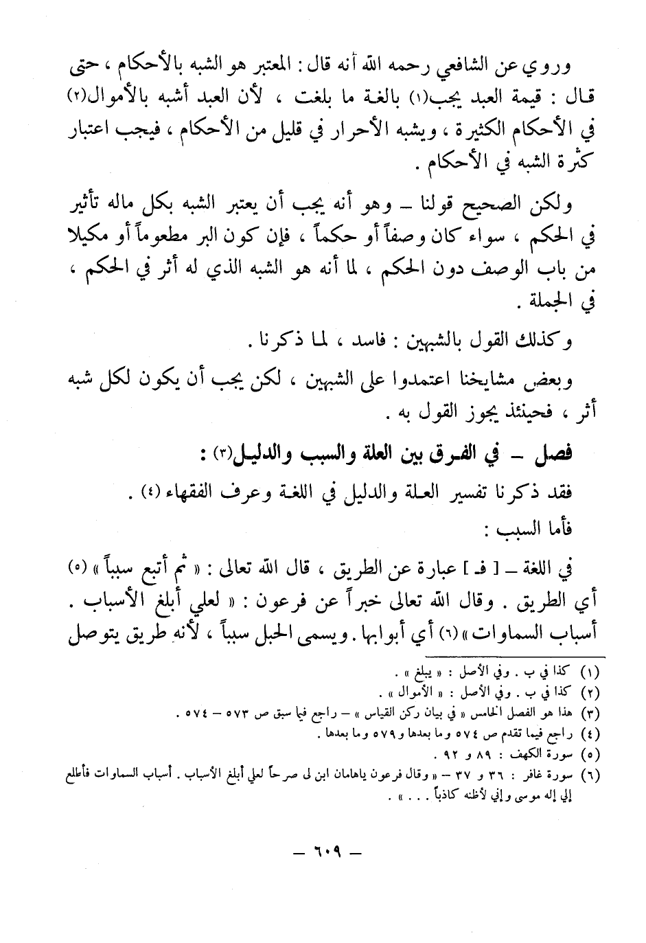 فصل - في الفرق بين العلة والسبب والدليل (¬3):