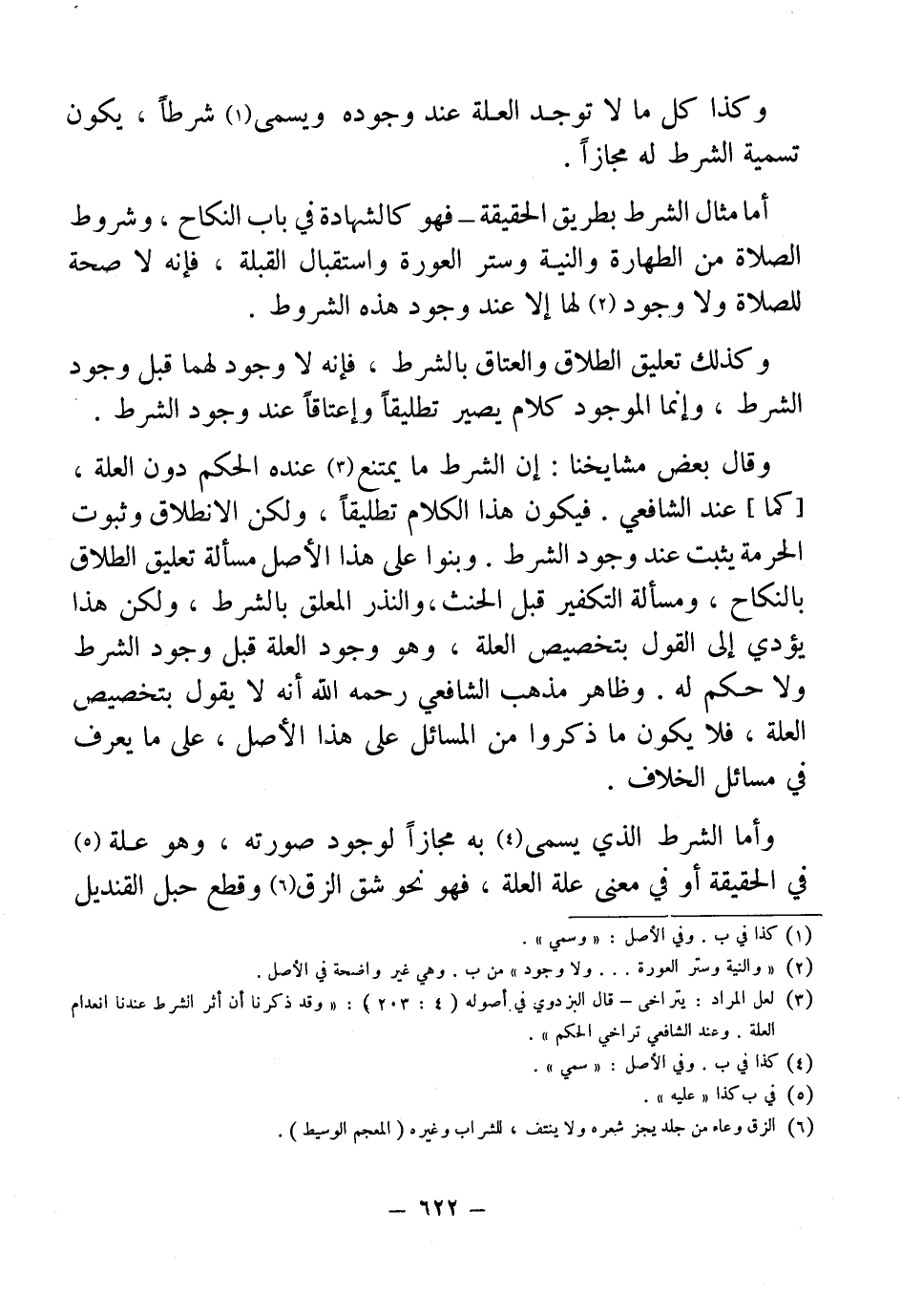 وأما الشرط الذي يسمى (¬4) به مجازًا لوجود صورته، وهو علة (¬5) في الحقيقة أو في معنى علة العلة، فهو نحو شق الزق (¬6) وقطع حبل القنديل