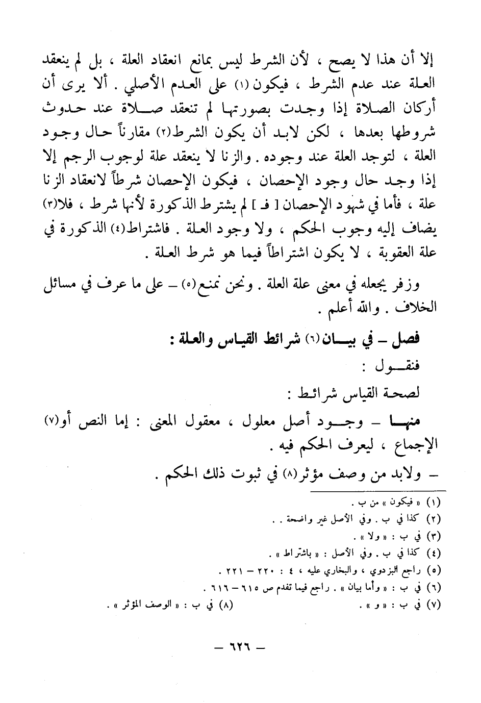 فضل - في بيان (¬6) شرائط القياس والعلة: