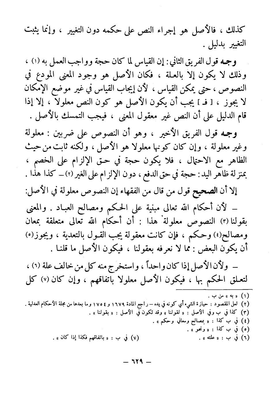 - لأن أحكام الله تعالى مبنية على الحكم ومصالح العباد. والمعنى بقولنا (¬3) النصوص معلولة هذا: أن أحكام الله تعالى متعلقة بمعان ومصالح (¬4) وحكم، فإن كانت معقولة يجب القول بالتعدية، ويجوز (¬5) أن يكون البعض: مما لا نعرفه بعقولنا، فيكون الأصل ما قلنا.