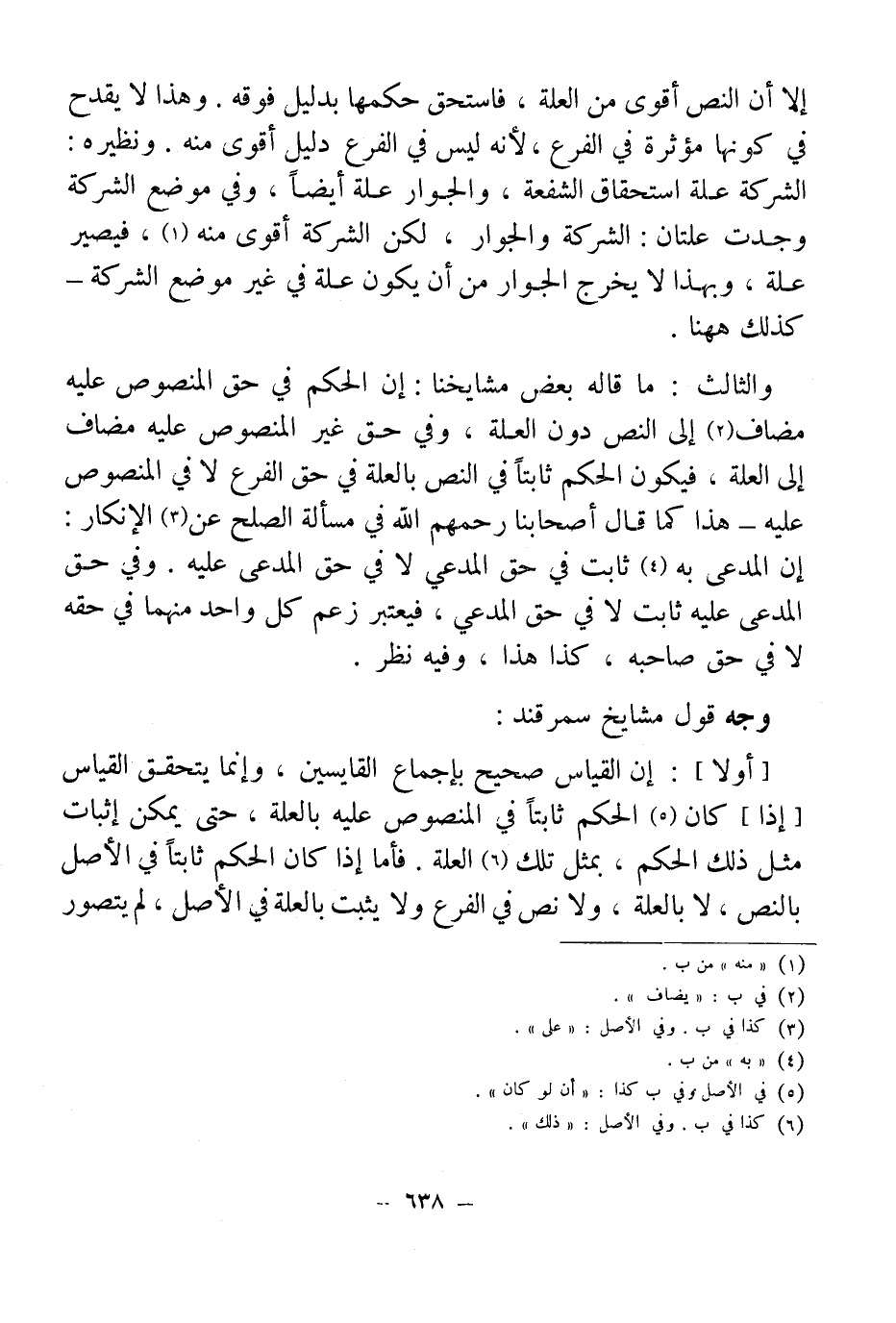 [أولا]: إن القياس صحيح بإجماع القايسين، وإنما يتحقق القياس [إذا] كان (¬5) الحكم ثابتاً في المنصوص عليه بالعلة، حتى يمكن إثبات مثل ذلك الحكم، يمثل تلك (¬6) العلة. فأما إذا كان الحكم ثابتاً في الأصل بالنص، لا بالعلة، ولا نص في الفرع ولا يثبت بالعلة في الأصل، لم يتصور