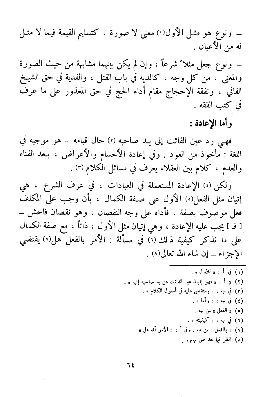 وأما الإعادة: