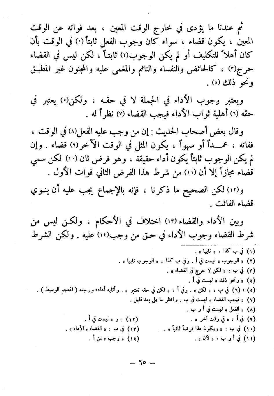 ثم عندنا ما يؤدى في خارج الوقت المعين، بعد فواته عن الوقت المعين، يكون قضاء، سواء كان وجوب الفعل ثابتًا (¬1) في الوقت بأن كان أهلا للتكليف أو لم يكن الوجوب (¬2) ثابتًا، لكن ليس في القضاء حرج (¬3)، كالحائض والنفساء والنائم والمغمى عليه والمجنون غير المطبق ونحو ذلك (¬4).