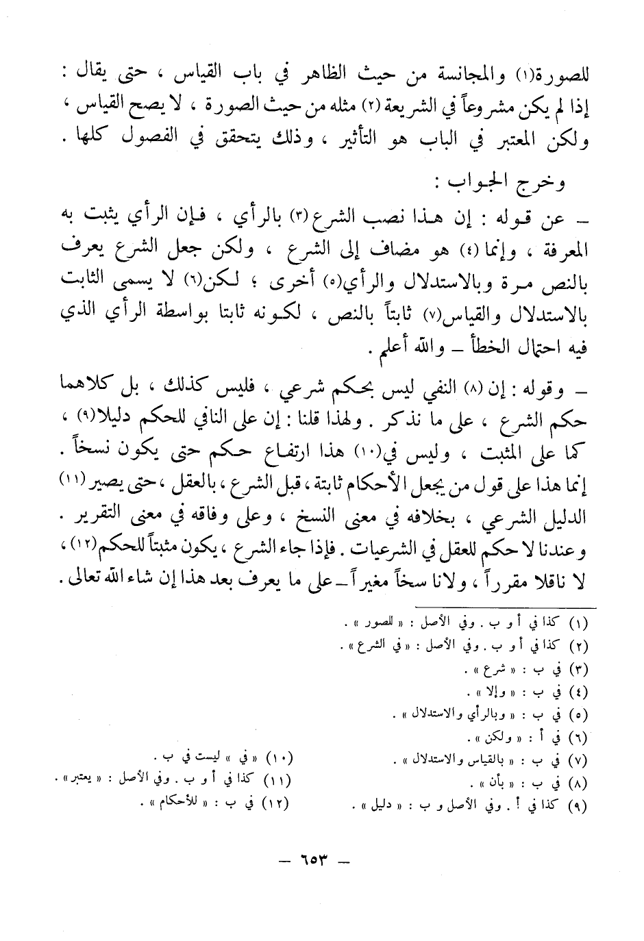 - عن قوله: إن هذا نصب الشرع (¬3) بالرأي، فإن الرأي يثبت به المعرفة، وإنما (¬4) هو مضاف إلى الشرع، ولكن جعل الشرع يعرف بالنص مرة وبالاستدلال والرأي (¬5) أخرى؛ لكن (¬6) لا يسمى الثابت بالاستدلال والقياس (¬7) ثابتًا بالنص، لكونه ثابتًا بواسطة الرأي الذي فيه احتمال الخطأ - والله أعلم.