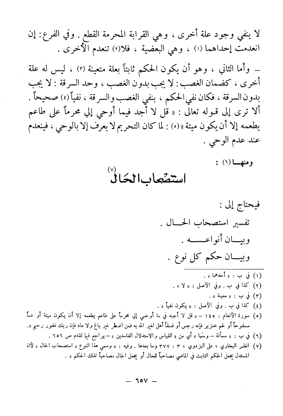 (¬7) انظر البخاري، على البزدوي، 3: 377 وما بعدها. وفيه: "وسمي هذا النوع "استصحاب الحال" لأن المستدل يجعل الحكم الثابت في الماضي مصاحبًا للحال أو يجعل الحال مصاحبًا لذلك الحكم".