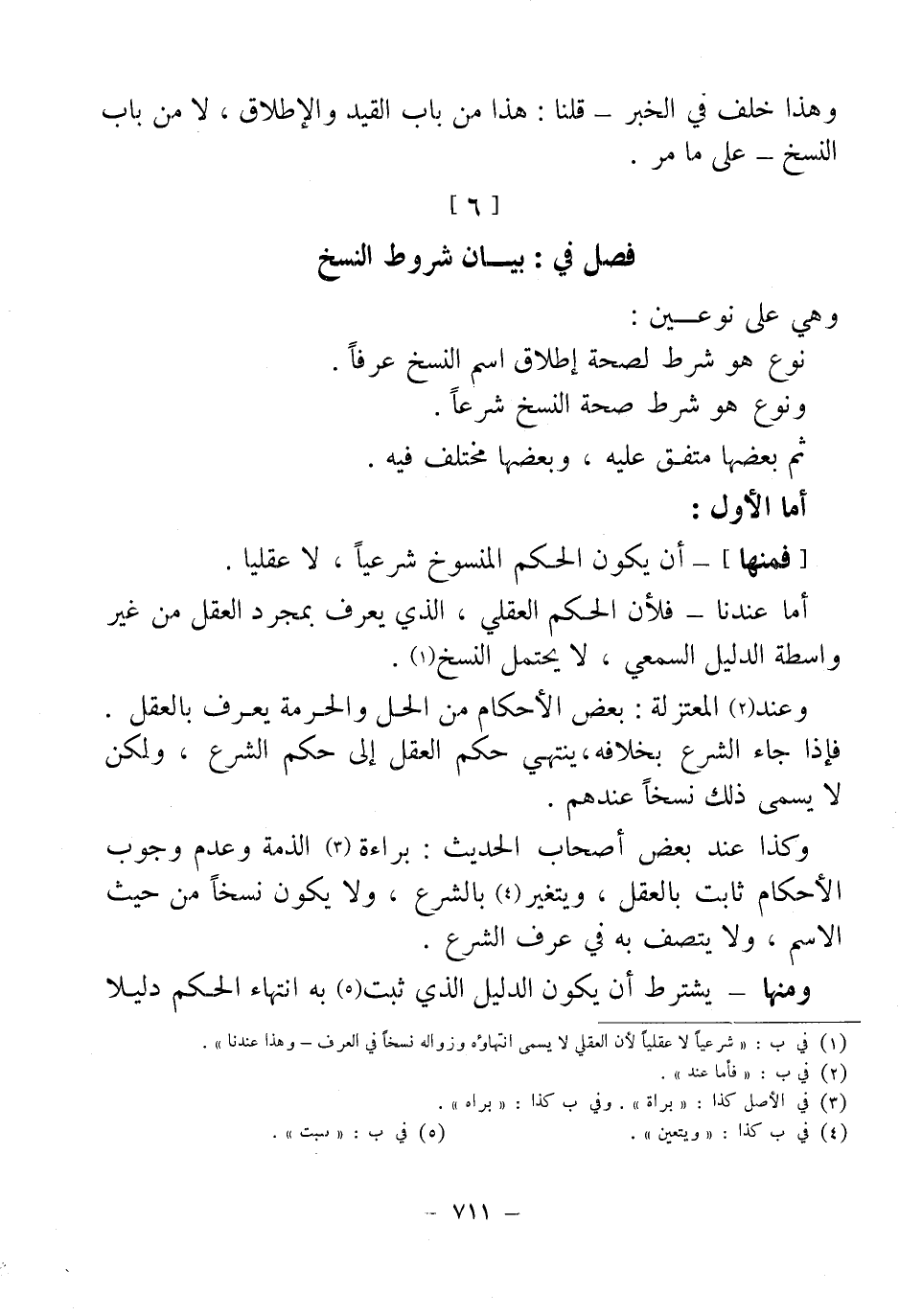 [فمنها]- أن يكون الحكم المنسوخ شرعياً، لا عقليا.