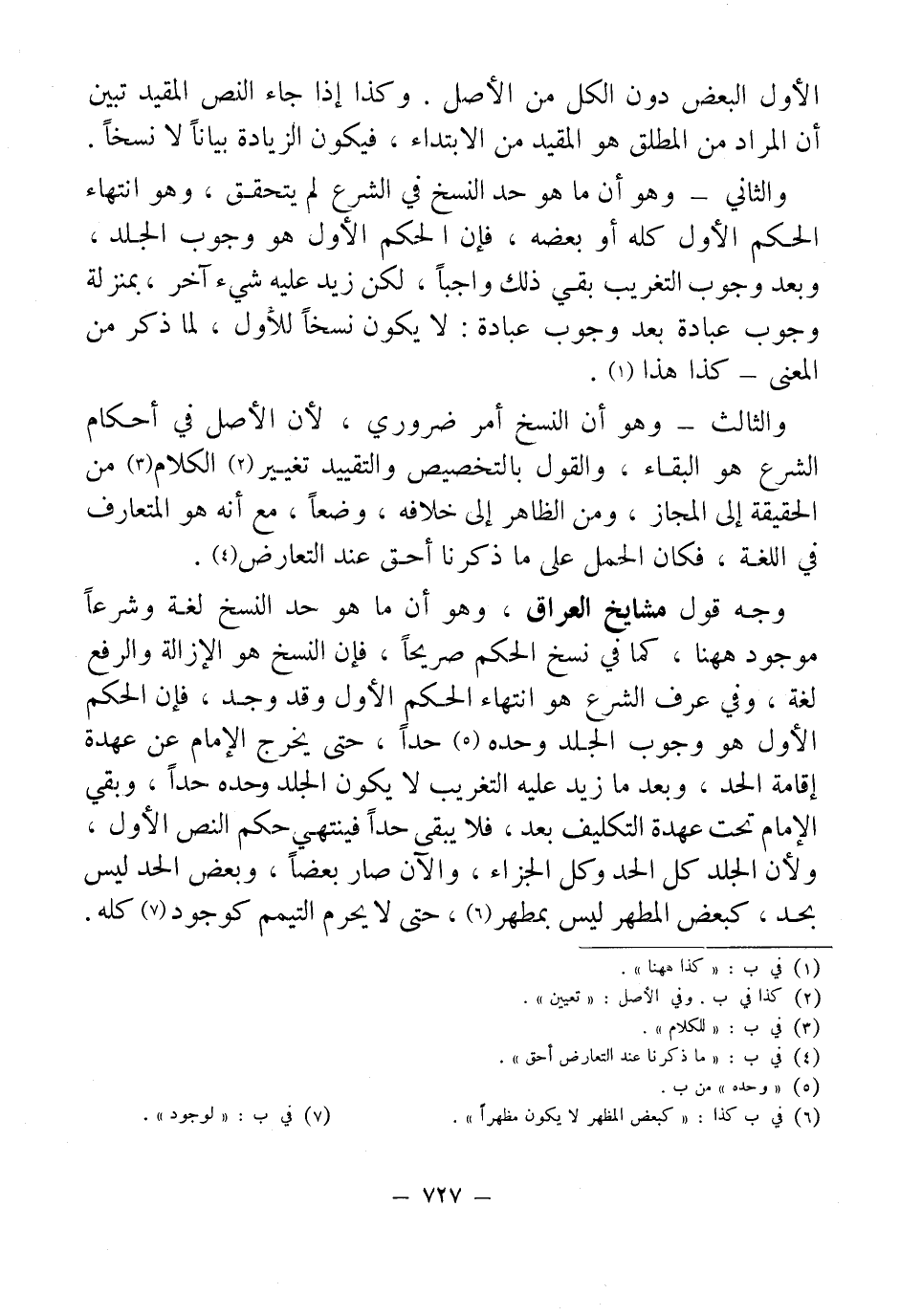 الأول البعض دون الكل من الأصل. وكذا إذا جاء النص المقيد تبين أن المراد من المطلق هو المقيد من الابتداء، فيكون الزيادة بياناً لا نسخًا.