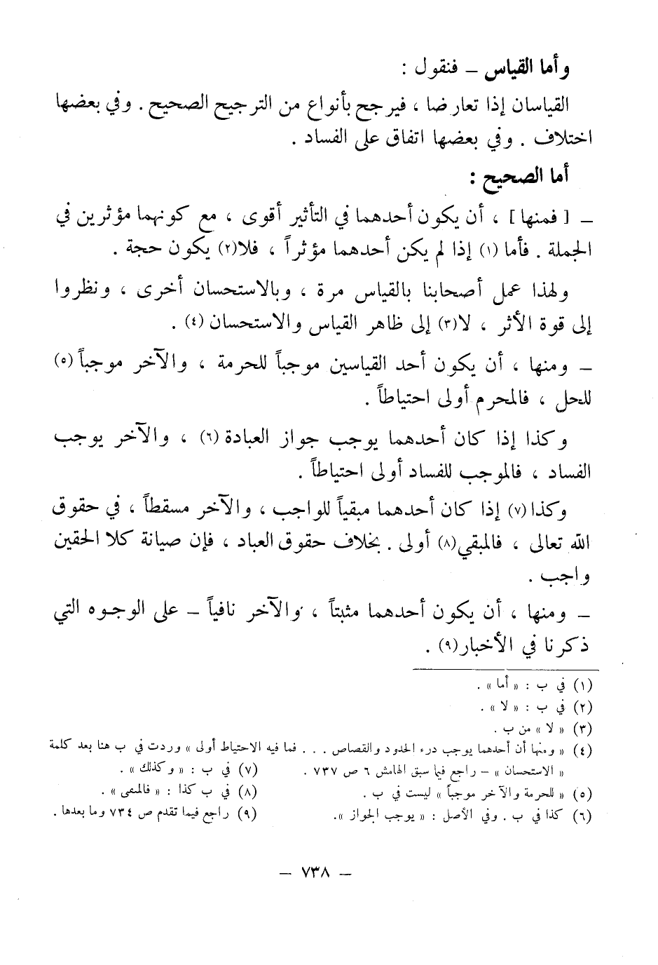 (¬4) "ومنها أن أحدهما يوجب درء الحدود والقصاص ... فما فيه الاحتياط أولى" وردت في ب هنا بعد كلمة "الاستحسان" - راجع فيما سبق الهامش 6 ص 737.