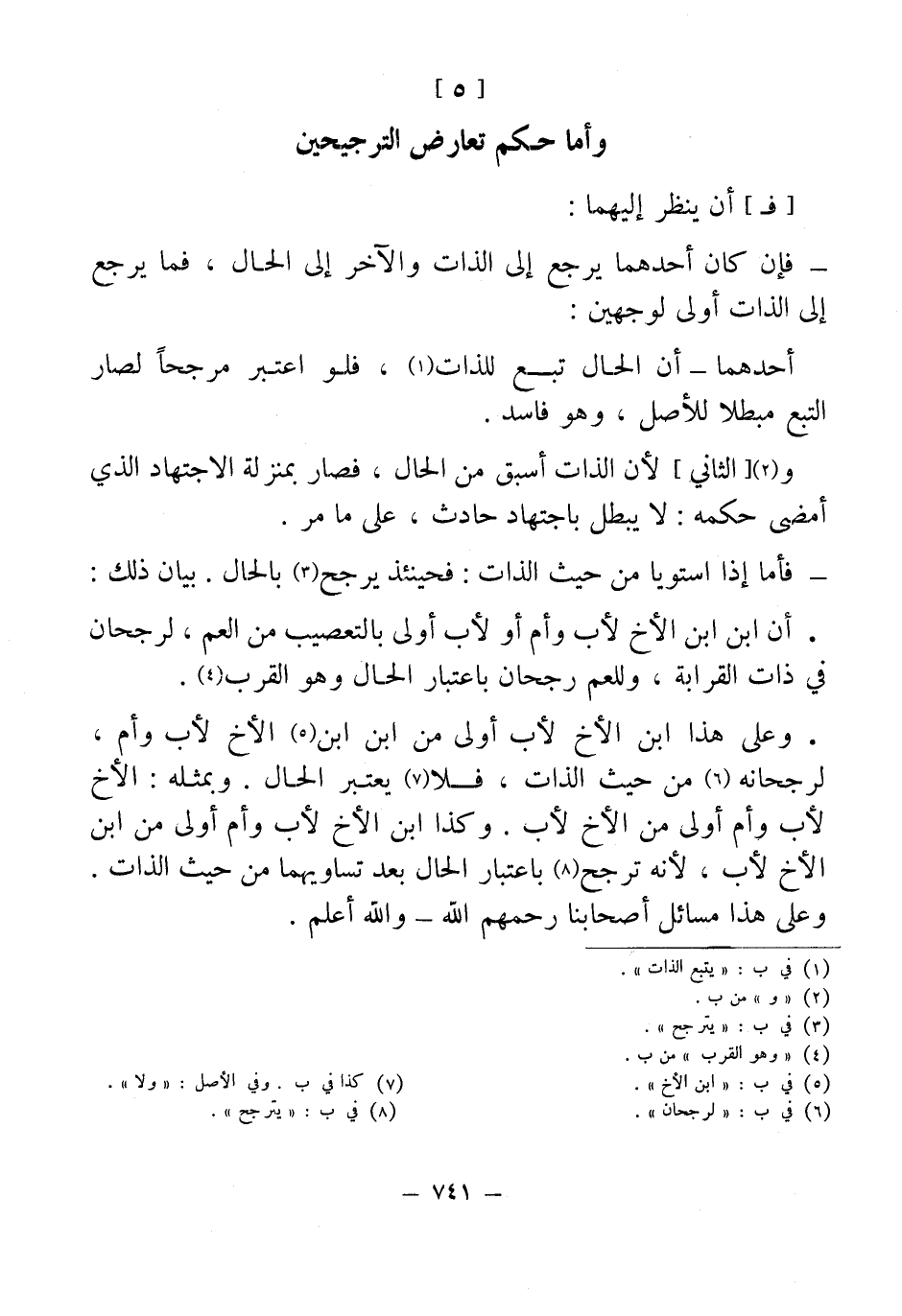 - فإن كان أحدهما يرجع إلى الذات والآخر إلى الحال، فما يرجع إلى الذات أولى لوجهين: