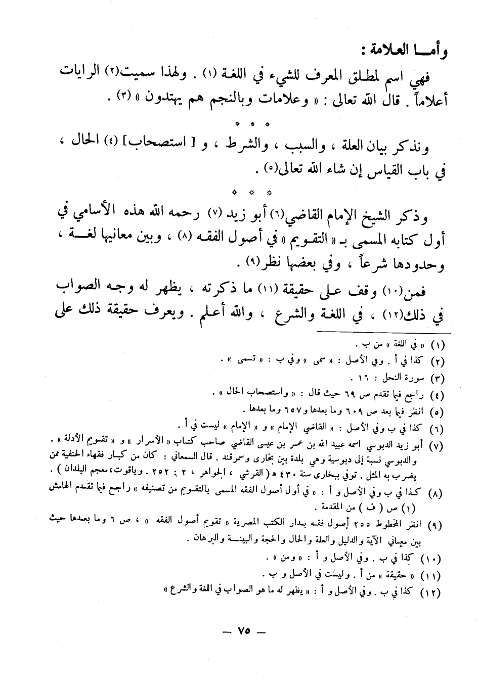 (¬9) انظر المخطوط 255 أصول فقه بدار الكتب المصرية "تقويم أصول الفقه"، ص 6 وما بعدها حيث بين معانى الآية والدليل والعلة والحال والحجة والبينة والبرهان.