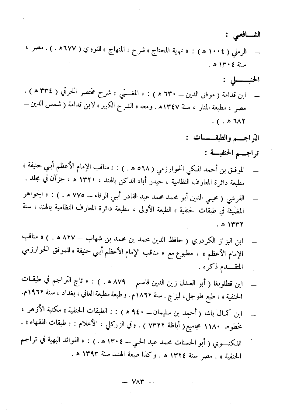- اللكنوي (أبو الحسنات عبد الحي - 1304 هـ.): "الفوائد البهية في تراجم الحنفية". مصر سنة 1324 هـ. وكذا طبعة الهند سنة 1393 هـ.