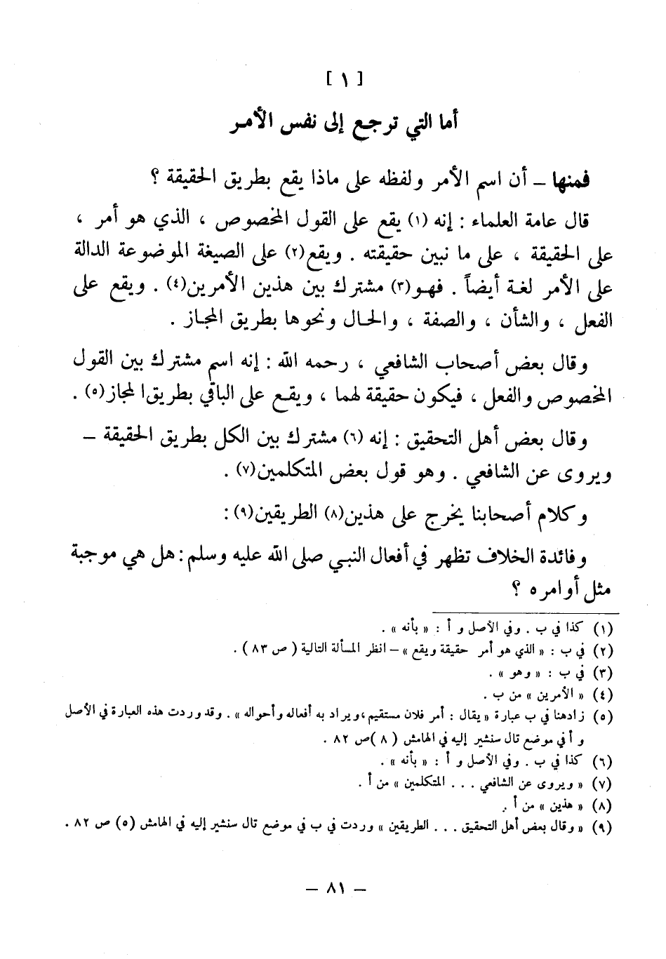(¬9) "وقال بعض أهل التحقيق ... الطريقين" وردت في ب في موضع تال سنشير إليه في الهامش (5) ص 81.