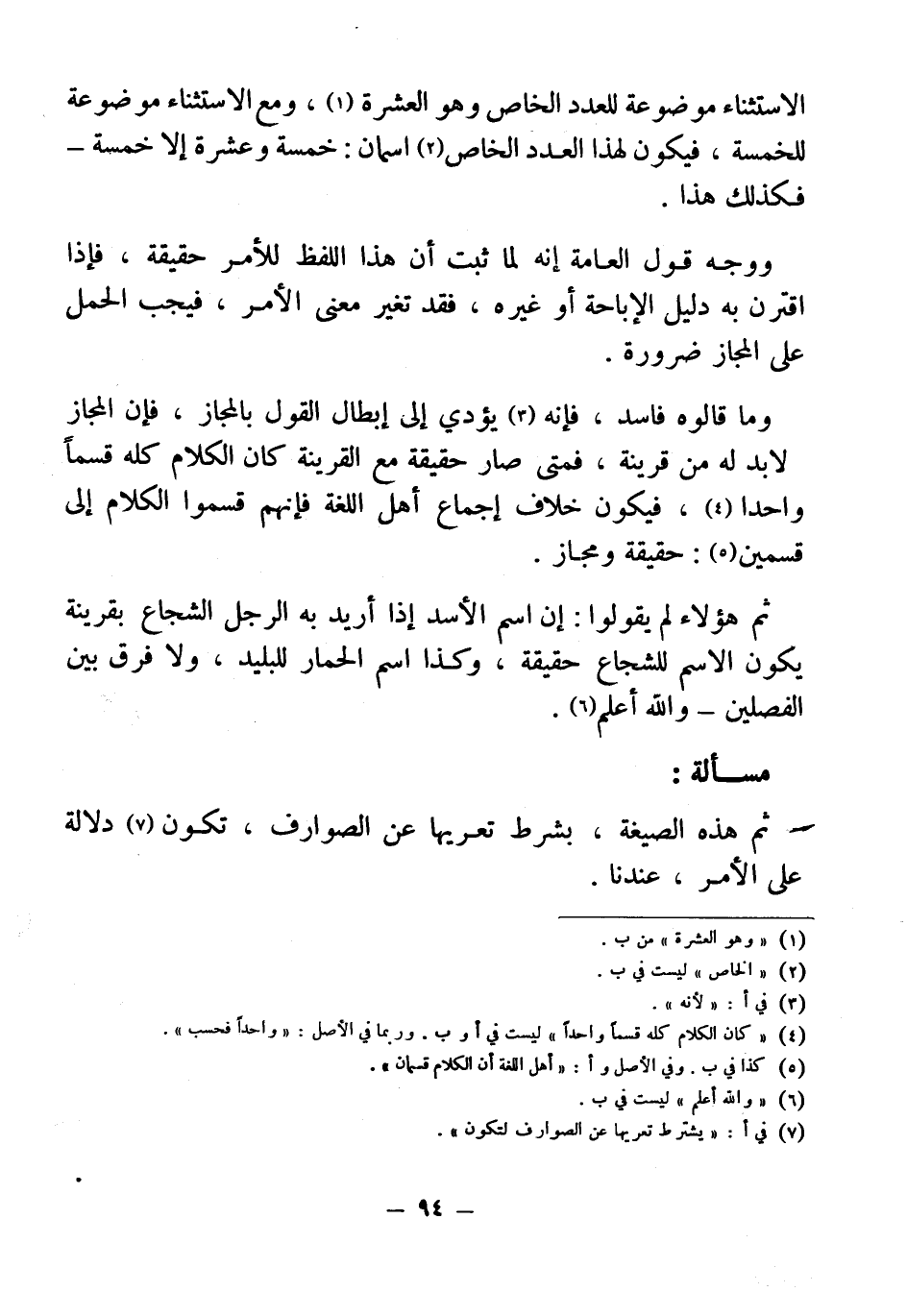 - ثم هذه الصيغة، بشرط تعريها عن الصوارف، تكون (¬7) فى دلالة على الأمر، عندنا.