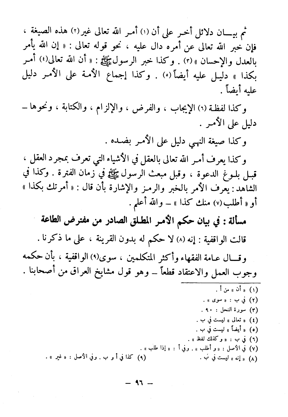 مسألة: في بيان حكم الأمر المطلق الصادر من مفترض الطاعة